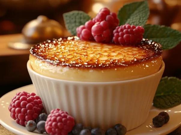 是一道口感細膩、風味豐富的經典法式甜點。它以香草味的奶油蛋奶布丁為基礎,上面覆蓋一層薄脆的焦糖殼,是許多甜品愛好者心中的至愛。